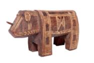 Physical DescriptionA carved wooden rhinoceros decorated with incised lines and geometric patterns. This rhinoceros has a wooden horn protruding from the end of his snout.