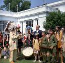 Historical NoteThis peace pipe was presented at a ceremony in the East Garden at the White House on June 16, 1962. Later President Kennedy sent a letter to Native American dancer Arthur Kingsbury of St. Paul, Minnesota, thanking Kingsbury and "the young men who make up the group known as the Calumet Dancers, for the 'Peace Pipe." The president noted that Sen. Hubert Humphrey had provided "a brief history of this gift which I found most interesting." The Calumet Dance was a ceremony performed throughout the Eastern Plains region.