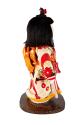 Physical DescriptionA Japanese girl doll wearing red and white print kimono, on a round wood base.