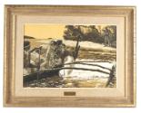Physical DescriptionBlack and white ink and gouache painting on sepia colored ground of John F. Kennedy in a canoe with indigenous islanders in the Solomon Islands. Framed, in linen covered mat with metal plaque.