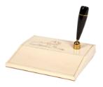 Historical NoteThe pen and stand are part of a desk set presented to President Kennedy during prime minister of the Somali Republic (1960-1969) Dr. Abdirashid Ali Shermarke's state visit to the White House November 27, 1962.