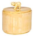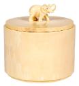 Physical DescriptionOval container with lid carved from ivory. The lid of the container has a carved elephant attached to center. This container is part of an 8 piece ivory desk set.