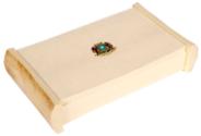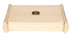 Physical DescriptionRectangular box with hinged lid carved from ivory. The lid of the box has an enamel crest of the Republic of Somali in center. This box is part of an 8 piece desk set.