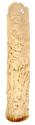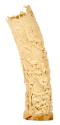 Physical DescriptionCarved elephant tusk lamp with wooden base. Cylindrical lamp is carved in relief with figures engaged in various activities (carrying sacks, holding spears, sitting, playing musical instruments, etc.) in a village scene with trees and huts. The base has two figures of a man and woman carved around the edge. The lamp is wired for a light bulb and has a plug with a switch attached at bottom by wire.