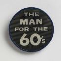 Physical DescriptionA reflecting 1960 presidential campaign button for John F. Kennedy. The hologram shows "The Man for the 60's" in white lettering on black ground as one image and the left profile of JFK in black and white with "John F. Kennedy" below as the alternating image.