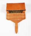 Physical Description10 Super X257 Roberts bullets in a tan leather case. Case closes with a leather strap, back of case has loops to fasten to a belt. Stitched together with cotton thread along outer edges. Inside of case has a cardboard cut out to accommodate 20 bullets.