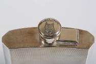 Physical DescriptionSilver flask engraved "Ernest Hemingway". The Cap is engraved "Love From" and stamped with a face of a cat.