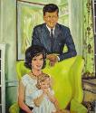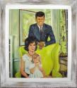 Physical DescriptionPortrait of Jacqueline Kennedy seated in a yellow armchair holding Caroline on her lap. John F. Kennedy is standing behind them with his arms resting on the back of the chair.