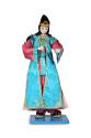 Physical DescriptionKorean male doll with cloth body and painted face wearing rose colored satin trousers and a tunic trimmed with blue satin and gold ric-rac. Bright blue brocade satin over garment.