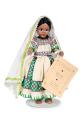 Physical DescriptionFemale doll with molded plastic body wearing a white cotton skirt and square neck blouse adorned with embroidery in bands of red, white, and green. She wears a white sheer head shawl with lace points. Costume is associated with the fiestas of "La Vainilla" and "El Xamat" in Totonaca, Mexico