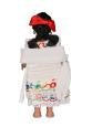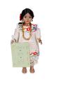 Physical DescriptionFemale doll with molded plastic body wearing a white satin skirt decorated with colored embroidery and lace trim over which is a long tunic (huipil) and a white sheer rebozo. She wears a red bow in her hair. Her costume is representative of Mestiza, Mexico