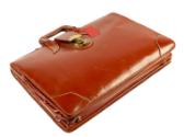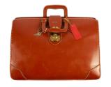 Physical DescriptionBurnt orange leather briefcase with exterior brass lock and key. Briefcase has 3 interior compartments. Attached to the handle is a red plastic tag embossed "The President", "JFK" is embossed in gold lettering on strap above the lock.
