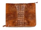 Physical DescriptionCrocodile skin portfolio with a metal zipper.