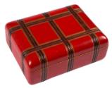 Physical DescriptionRectagular humidor painted with red enamel over the wood exterior carved in bands to create checkered pattern. Interior lid is carved with initials "JFK".