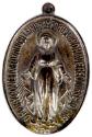 Physical DescriptionOval medal, obverse has a relief of the Virgin Mary standing, embossed around rim reads "O Mary conceived without sin pray for us who have recourse to thee", reverse is stamped with religious symbol of cross and sacred heart.