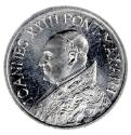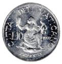 Physical DescriptionAluminum 10 lire coin featuring image of Pope John XXIII facing proper left on obverse. Image of woman holding a serpent and a mirror with "Prudentia" (wisdom) and "Citta del Vaticano"on reverse. Coin came in white and gold box with 8 other coins, box has gold papal seal insignia on cover.