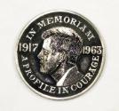 Physical DescriptionMemorial medal hand engraved with left profile of John F. Kennedy on obverse embossed "In Memoriam A Profile in Courage". Reverse is embossed: By Creativity- Self Disipline, and Justice Man can endure.