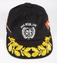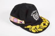 Physical DescriptionBlack wool baseball cap, embroidered with North Korea on back, flags on sides, and "Pan Mun Jom" on front, and gold oak leaves on brim
