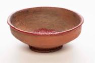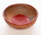 Physical DescriptionHand made ceramic bowl with a out-turned flanged rim, carinated wall, and notched ring base. The rim and the interior floor of the bowl are glazed red.