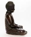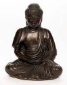 Physical DescriptionCast bronze seated figure of Buddha, in cross-legged position, with his hands in dhyana mudra (the posture of meditation). The folds of his garment fall in his lap in a lotus-like pattern.