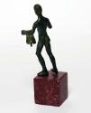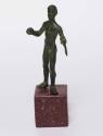 Physical DescriptionCast bronze votive figurine of Herakles with a Nemean lion skin draped over his left arm. His club is missing from his right hand. Statuette is mounted on a purple porphyry base.