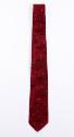 Physical DescriptionMaroon silk neck tie woven with a repeating pattern of an Equestrian figure on a horse making a jump and alternating blue, yellow and white flags.