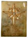 Physical DescriptionRectangular gold plated medallion with a relief of the Arc de Triumph in center and "Union Nationale/des Officiers de Reserve" engraved along bottom edge. Presented to President Kennedy by the reserve officers of France. Reverse of medal is engraved: "Hommage / des Officers de Reserve de France / (U.N.O.R.) / A John F. Kennedy / President des Etats Unis D'Amerique / Officer de Reserve Marine U.S.A. / 1961"