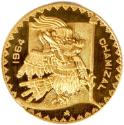 Physical DescriptionGold medallion commemorating settlement of the Chamizal controversy. Obverse depicts Aztec sun god, reverse has two hands reaching out of buildings to hold a torch with the date 1964 above building on left.