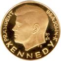 Physical Description.900 gold medal struck by the Bavarian State Mint as a tribute to the Inauguration of John F. Kennedy. Profile of President Kennedy on obverse with "USA John F. Kennedy Prasident" engraved around rim. The reverse shows a bird of peace holding an olive branch and an inscription around edge "Sententia - Pax-Labor-Panis - Orbi Terrarum." This medal was distributed in the United States by the International Coin and Medal Corporation, New York, New York
