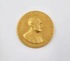 Physical DescriptionGold medal with profile of Bob Hope in low relief on recto. Surrounding profile is Bob Hope Humorist Humanitarian Patriot. On reverse "Presented to Bob Hope by President Kennedy In recognition of his having rendered outstanding service to the cause of democracy throughout the world." with relief of the globe and a comedian mask, below "by act of Congress June 8, 1962".