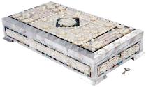 Physical DescriptionLocking wood chest elaborately decorated with mother of pearl on exterior. Top center of lid bears inscription in relief "Blessing of the Holy Sepulchre of our lord to the President of the United States of America John F. Kennedy" lower center "Benedictos Greek Orthodox Patriarch of Jerusalem Jerusalem 1961". The chest contains the Grand Cross and Grand Cross Star (c-d), conferring rank in the Equestrian Order of the Holy Sepulchre of Jerusalem. Silver skeleton key for lock inside chest.