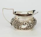 Physical DescriptionSilver repousse cream pitcher with a thin handle, one of five pieces in tea service.