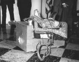 Historical NoteThis ornate saddle was a state gift from King Hassan II of Morocco, presented during his visit to the White House on March 27, 1963. Like other heads of state, King Hassan brought gifts for the Kennedy children and in this case was familiar with the interests of young Caroline Kennedy. The saddle was used on her pony Macaroni.