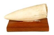 Physical DescriptionUndecorated whale tooth horizontally mounted on a rectangular wooden base.
