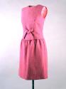 Physical DescriptionA sleeveless rose-pink dress in basket-weave wool with an A-line skirt and a bow at the center of the waist. This dress was purchased from Joan Morse's Manhattan boutique, A La Carte.