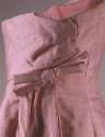 Physical DescriptionAn evening gown in candy pink silk-dupioni shantung. The dress wraps together in back and ties in a stiff Kabuki bow. The dress has a boned, cotton-net underbodice that contains the figure and allowing the silk to fall over the top of the structure.
