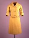 Physical DescriptionA two piece suit of pale yellow wool with a three button collar jacket and an A-line skirt.