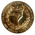 Physical DescriptionGold medallion awarded to President Kennedy from National Football Foundation and Hall of Fame. Center of medallion has high relief of a football player caught in the action of kicking a ball surrounded by laurel leaves. Engraved around outer rim "The National Football Foundation and Hall of Fame Award". Reverse is engraved "Presented to John F. Kennedy President of the United States in recognition of his dedication to competitive athletics and his devotion of American intercollegiate football December 5, 1961".