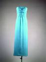 Physical DescriptionA strapless evening dress in azure blue silk crepe Giselle with a bow at the bustline.