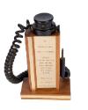 Physical DescriptionSpeaker with coiled black cord mounted onto a wood base. Attached to base is a brass plate engraved: To President-elect John F. Kennedy/ speaker used to announce birth of John F. Kennedy, Jr. by John F. Kennedy while airborne over Florida/It's a Boy/11/25/60/Presented by Paul Metcalf, National Airlines.