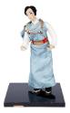 Physical DescriptionIndian female doll with cloth body. The doll is dressed like a "Lepcha" woman wearing a blue silk dress and white blouse, a red belt and beaded necklace. The doll is mounted on wooden platform painted black.