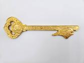 Physical DescriptionKey to the city of High Point, North Carolina presented to President Kennedy. Gold colored metal key engraved along shaft "High Point / Founded 1851", reverse reads, "Jesse Washburn, Major / Furniture and Hosiery Center". The top of the key has the seal of the city of High Point, bottom of the key is a map of North Carolina.