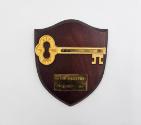 Physical DescriptionKey to city of Springfield, Ohio, mounted on a shield-shaped wood plaque. Brass plate mounted to plaque is engraved "Jack Kennedy/October 17, 1960".