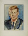Physical DescriptionWatercolor portrait of President Kennedy wearing a pinstriped suit, with a blue background.